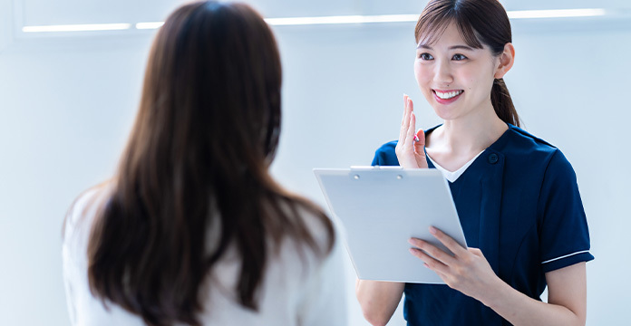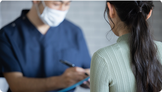その後、専門のアドバイザーが施術内容、具体的な費用、スケジュールについて詳しくご説明いたします。 ご納得いただけましたら施術日を決定し、当日までの準備や流れをご案内します。 不明点や不安が残らないよう、徹底してサポートいたします。 -